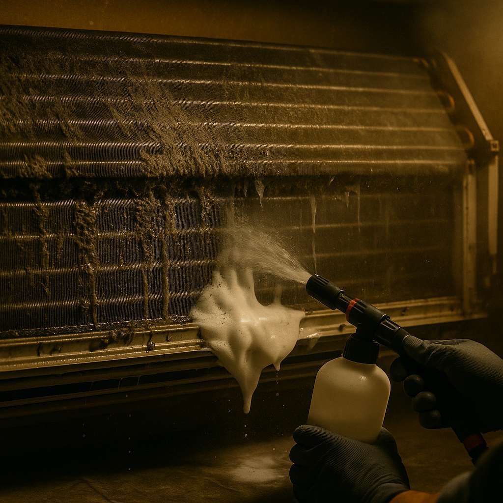 The coils in your AC system — the evaporator coil inside the indoor unit and the condenser coil outside — are responsible for transferring heat. Over time, both coils accumulate a thick layer of dust, grime, and sometimes mold. This buildup insulates the metal surface, making heat exchange inefficient. The result? Your AC cools slower, consumes more power, and strains internal components.