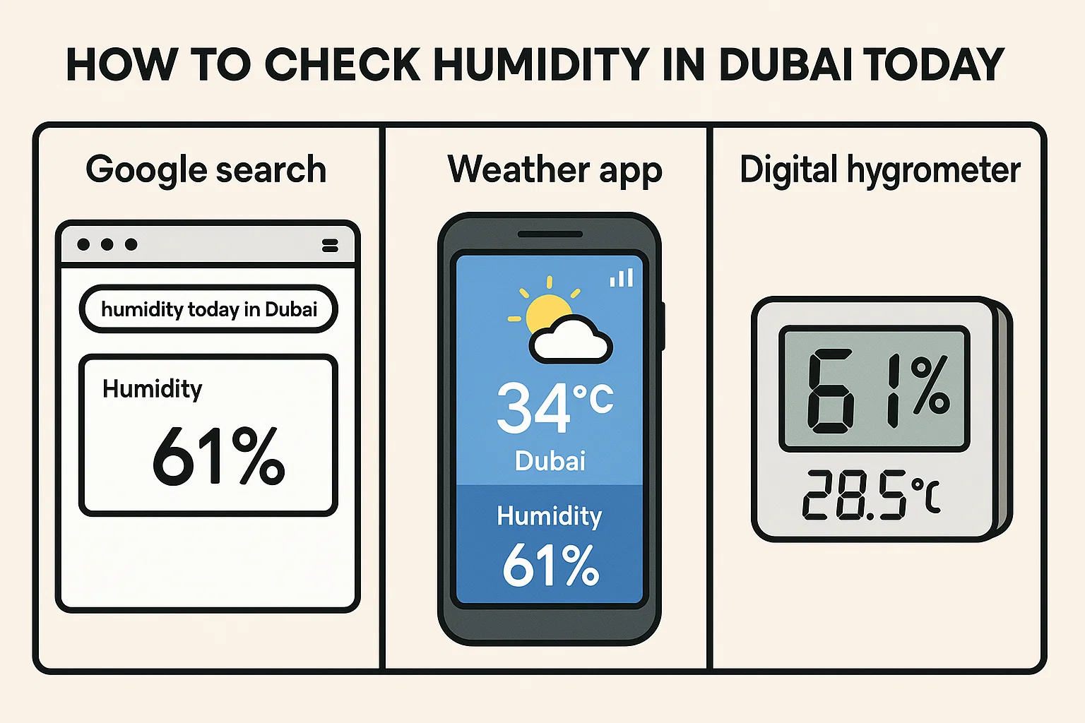 If you prefer using apps, many free options provide real-time humidity data for Dubai. Apps like Weather Underground, AccuWeather, or The Weather Channel allow you to save Dubai as your location and check the humidity anytime. Some even give alerts when the humidity level gets extreme, which is useful during the peak summer months when conditions can change very quickly. For residents who want even more precise readings, small home devices called hygrometers can be purchased online or in electronics shops in Dubai. These devices show you the exact humidity inside your home, which is especially helpful if you’re worried about mold or air quality.
