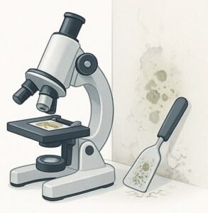 Direct sample collection from surfaces for lab analysis. This method provides information about the types of mold present on treated surfaces.